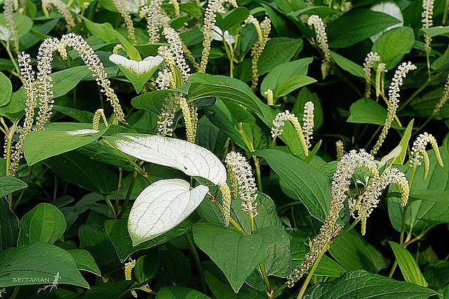 Cây hàm ếch hay còn được biết đến với tên gọi trầu nước, tam bạch thảo, đường biên ngẫu,... Tên khoa học là Saururus chinensis, tên dược là Herba Saururi chinensis. Loại cây này thuộc họ lá giấp (Saururaceae)