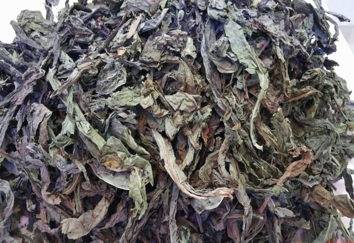 Người ta sẽ lựa chọn thu hoạch những lá lành lặn, to khỏe và không bị sâu bệnh. Sau đó đem rửa sạch lá khôi rồi phơi nắng cho đến khi mềm lại, ủ lá trong bóng râm. Ngoài ra lá còn có thể được sao lên khi dùng.