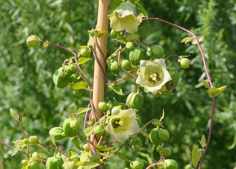 Hoa đẳng sâm có màu xanh nhạt, mọc đơn độc ở kẽ nách lá, cuống hoa dài 2 - 6cm, đài tràng hình chuông, gồm 5 phiến hẹp, 5 cánh có vân màu tím ở họng, lúc sắp rụng trở thành màu vàng nhạt, chia làm 5 thùy, nhụy 5, chỉ nhụy hơi dẹt, bao phấn ở đính gốc.