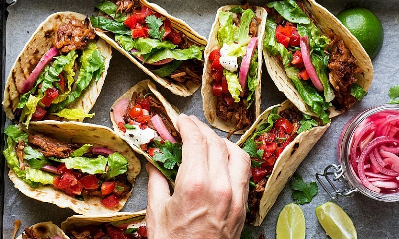 Nhắc đến ẩm thực Mexico thì chắc chắn không thể bỏ qua món Tacos - món bánh truyền thống của đất nước này. Đây là món ăn khá đơn giản với những nguyên liệu dễ kiếm như bột ngô và nhân bên trong gồm thịt lợn, thịt gà, thịt bò, hay cá tùy thuộc vào khẩu vị của người ăn.