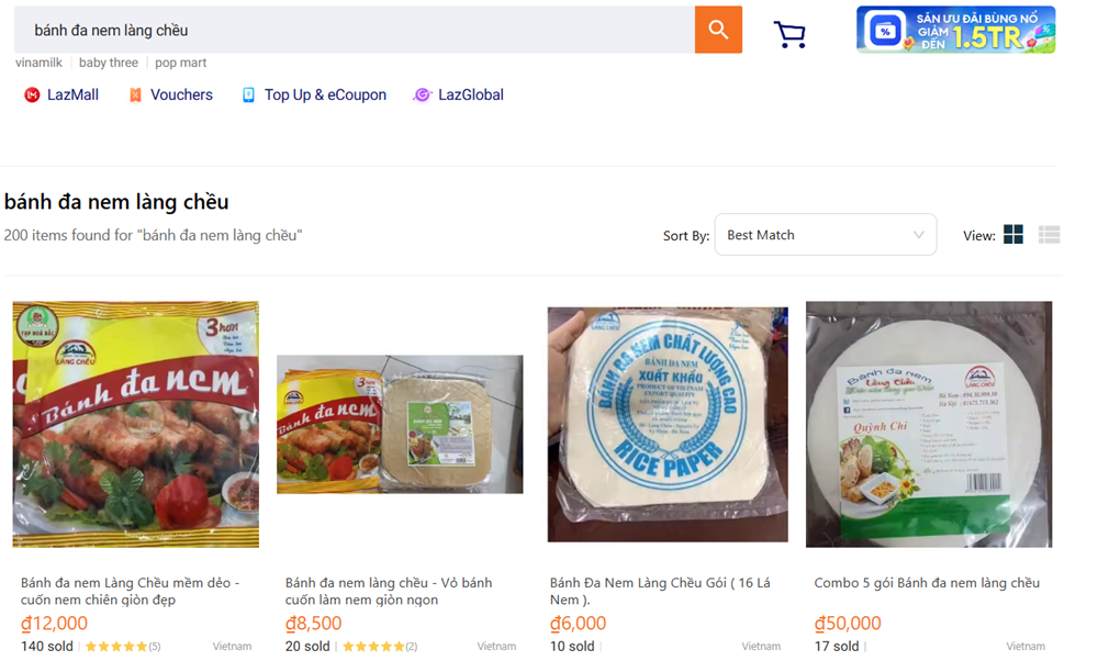 | Người tiêu dùng dễ dàng tìm mua sản phẩm bánh đa nem làng Chều (Nguyên Lý, Lý Nhân) trên các kênh thương mại điện tử. |