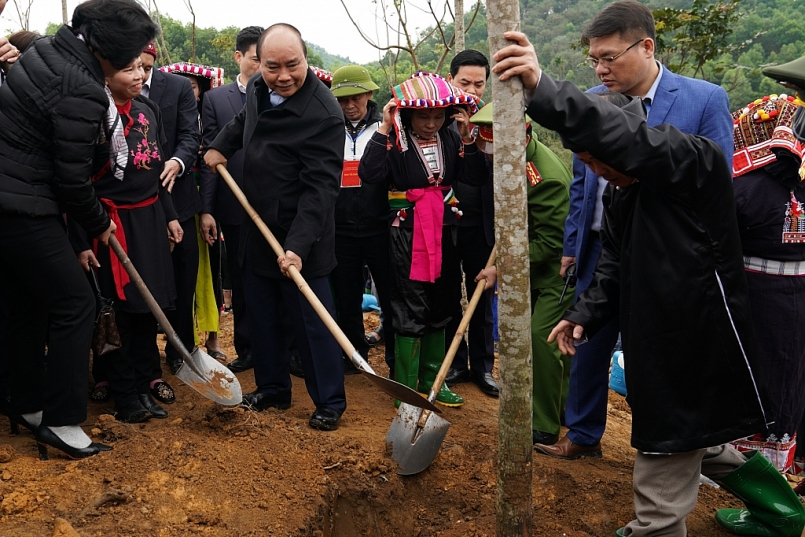 Thủ tướng Nguyễn Xuân Phúc dự và phát động Tết trồng cây đời đời nhớ ơn Bác Hồ, tại Yên Bái vào đầu Xuân Canh Tý 2020. Ảnh VGP/Quang Hiếu |