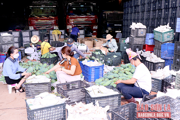 Công ty TNHH Thương mại và dịch vụ Trường Mai (Mai Sơn) thu mua, đóng gói xoài.