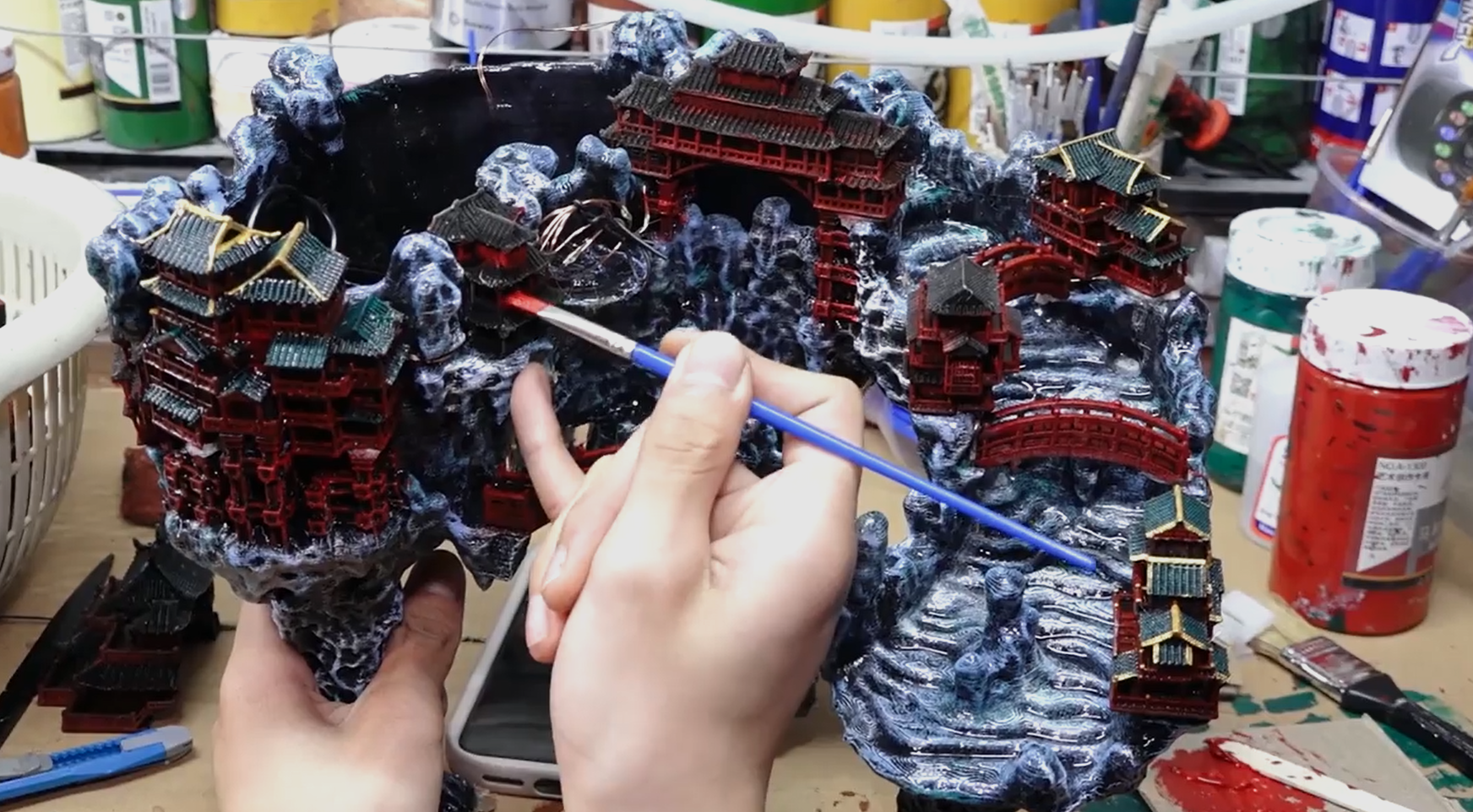 Anh Tuấn cho biết các sản phẩm mô hình tiểu cảnh 3D cần trải qua rất nhiều công đoạn, đòi hỏi người làm phải nhanh và mức giá bán phải chăng. Mỗi công đoạn sẽ có những khó khăn riêng.