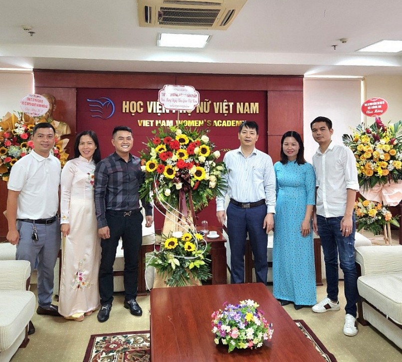 Nhân kỷ niệm 40 năm Ngày Nhà giáo Việt Nam (20/11/1982 - 20/11/2022), sáng 18/11, Nhà báo Nguyễn Viết Hưng - Tổng Biên tập Tạp chí Thương hiệu & Sản phẩm (TH&SP) đã đến thăm và tặng hoa chúc mừng cán bộ, giảng viên Học viện Phụ nữ Việt Nam (VWA).