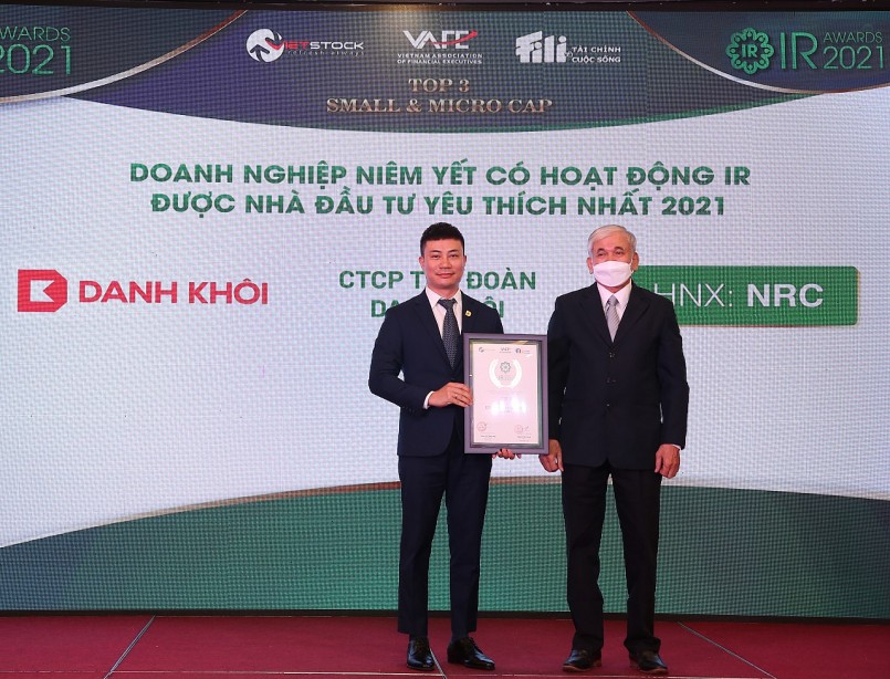 Tại Lễ trao giải thưởng IR Awards 2021 diễn ra vào 07/12, Tập đoàn Danh Khôi (Mã chứng khoán: NRC) đã xuất sắc được vinh danh ở hai hạng mục quan trọng gồm Top 3 Doanh nghiệp niêm yết có hoạt động IR được định chế tài chính đánh giá cao nhất và Top 3 Doanh nghiệp niêm yết có hoạt động IR được nhà đầu tư yêu thích nhất, thuộc nhóm Small & Micro Cap.
