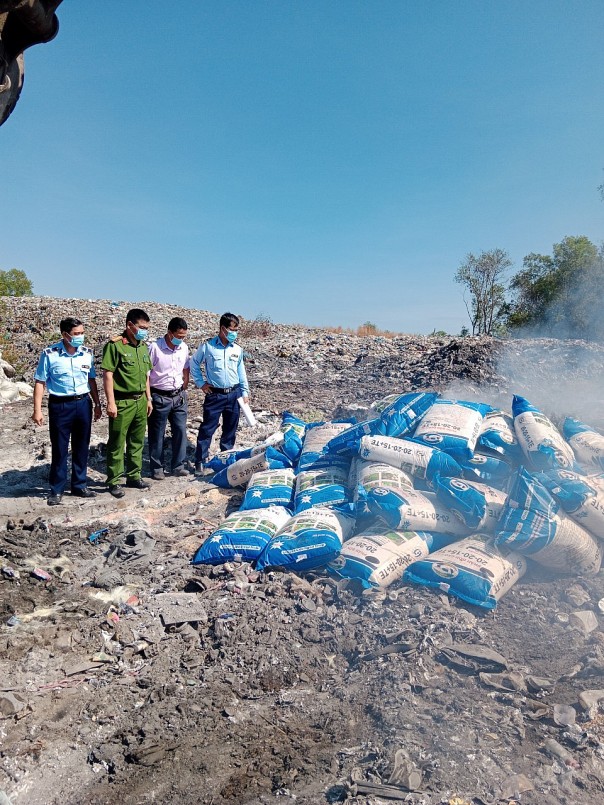 Đội Quản lý thị trường (QLTT) số 4 tỉnh Tây Ninh tiến hành giám sát việc tiêu hủy 3,5 tấn tang vật là phân bón giả về giá trị sử dụng, công dụng, tổng trị giá 52,5 triệu đồng.