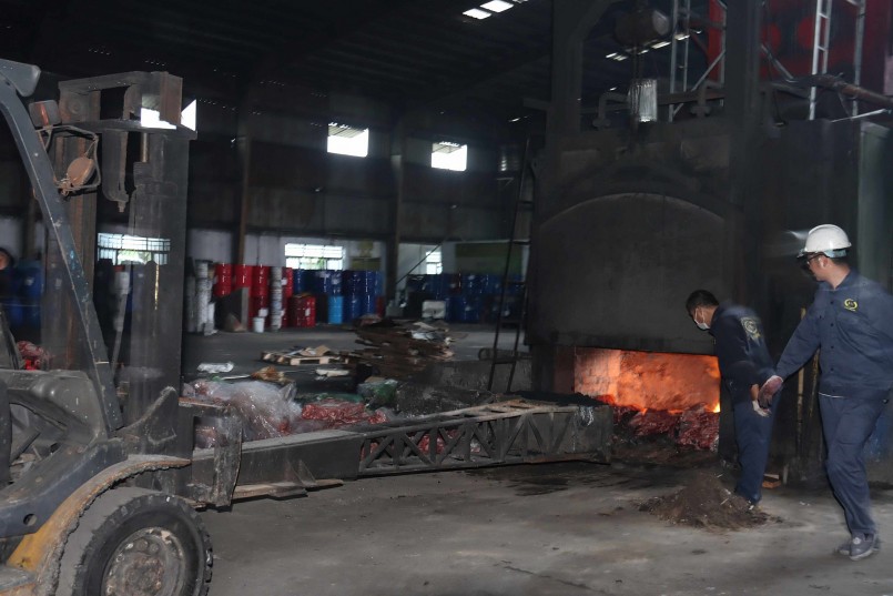 Chiều ngày 02/11/2023, tại Công ty cổ phần đầu tư và kỹ thuật tài nguyên môi trường ETC, địa chỉ Đường D1(M2+M3), KCN Hòa Xá, P Lộc Vượng, TP Nam Định, Đội Quản lý thị trường số 1 đã giám sát tiêu hủy 3.220 kg thịt lợn đã biến đổi màu sắc và bốc mùi ôi thiu bằng hình thức đốt hủy trực tiếp trong lò đốt ở nhiệt độ cao.