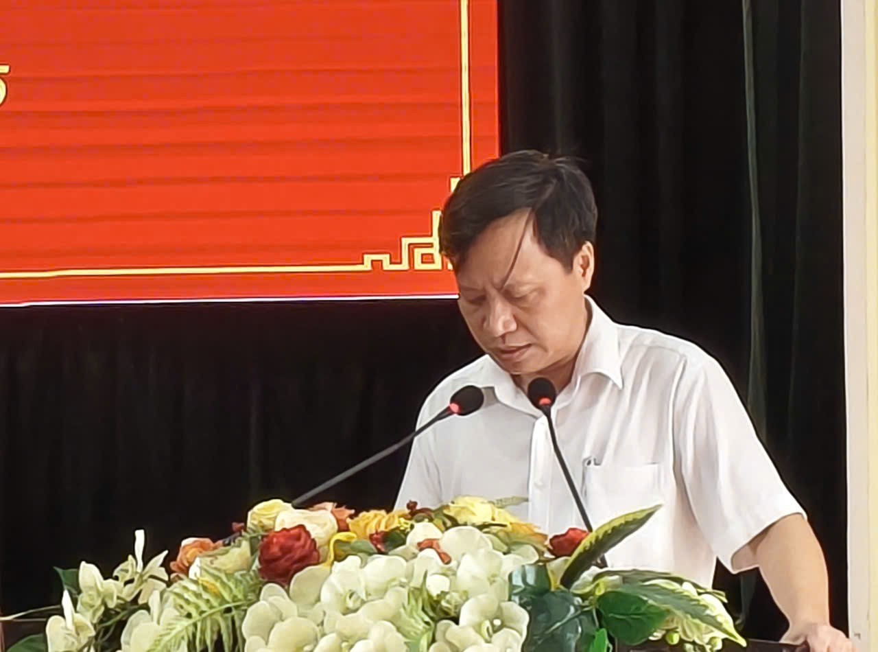 | Phó Trưởng Ban Tuyên giáp và Dân vận Tỉnh ủy Phạm Văn Tuấn phát biểu tại hội nghị, cùng các đồng chí lãnh đạo đồng chủ trì hội nghị. |