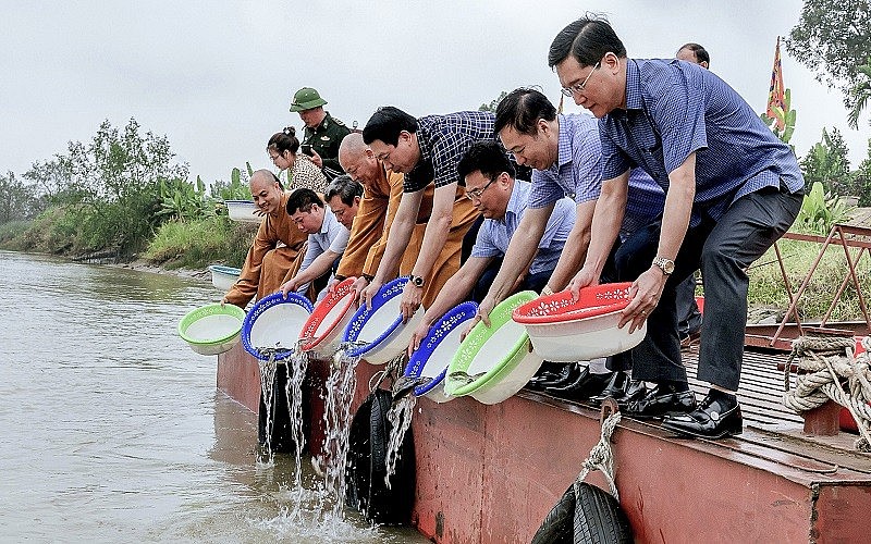 | Lễ thả cá giống tái tạo và phát triển nguồn lợi thủy sản trên lưu vực sông Mã, TP Thanh Hóa |