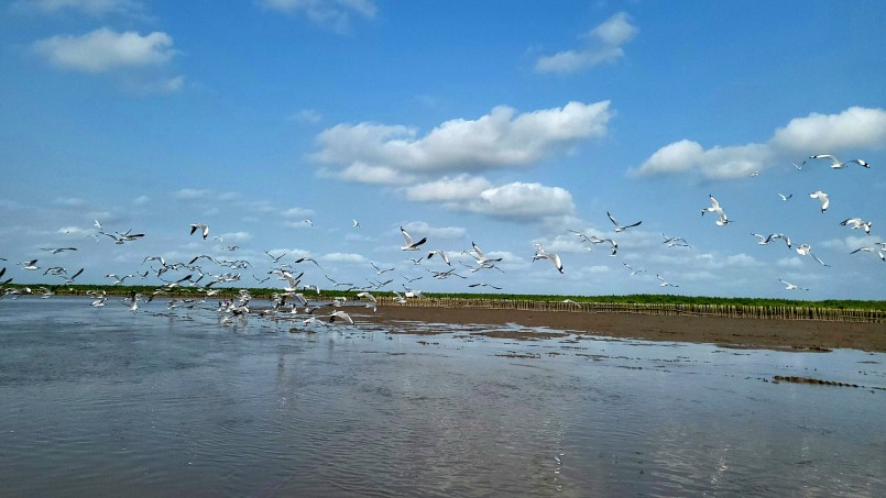 Đi thuyền từ xa, đã có thể dễ nhận ra khu vực cánh rừng Net Zero Vinamilk nhờ những đàn chim nhạn, chim cót… hàng trăm con bay lượn, náo nhiệt cả một khu vực. Theo kinh nghiệm khoanh nuôi rừng ngập mặn nhiều năm qua, bà Huyền Đỗ - Nhà sáng lập kiêm Giám đốc Trung tâm Bảo tồn Thiên nhiên Gaia cho biết, đây là tín hiệu rất vui. Bởi các đàn chim, cò tìm về cho thấy thảm thực vật và hệ sinh vật rừng đang phát triển tốt.