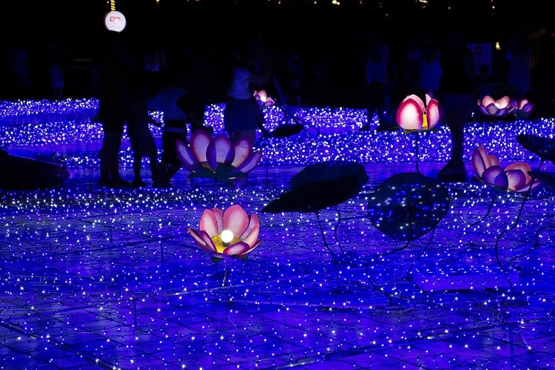 Đây là lần đầu tiên sự kiện được tổ chức tại Đà Nẵng với hệ thống chiếu sáng quy mô lớn, 500.000 đèn LED được lắp đặt tạo nên không gian huyền ảo. |