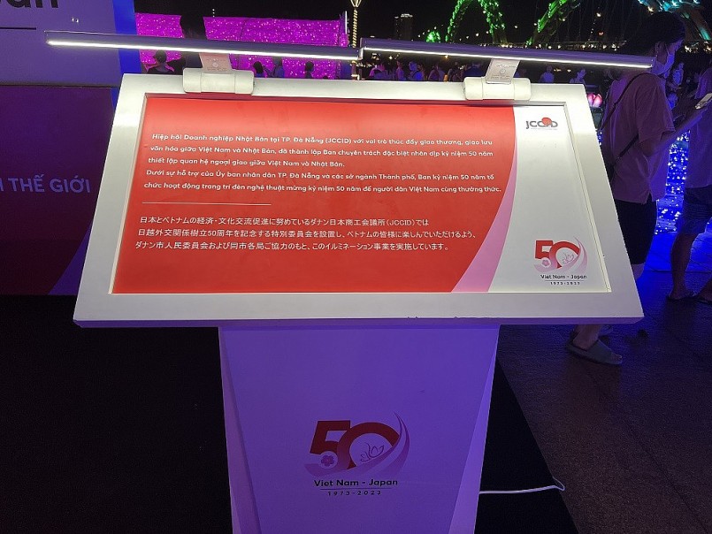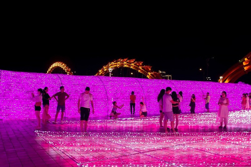 Nhân dịp kỷ niệm 50 năm thiết lập quan hệ ngoại giao Việt Nam – Nhật Bản (1973-2023), công trình nghệ thuật không gian ánh sáng lần đầu tiên được diễn ra tại Công viên bờ Tây cầu Rồng (quận Hải Châu, Đà Nẵng) thu hút người dân và du khách đến tham quan và check-in.