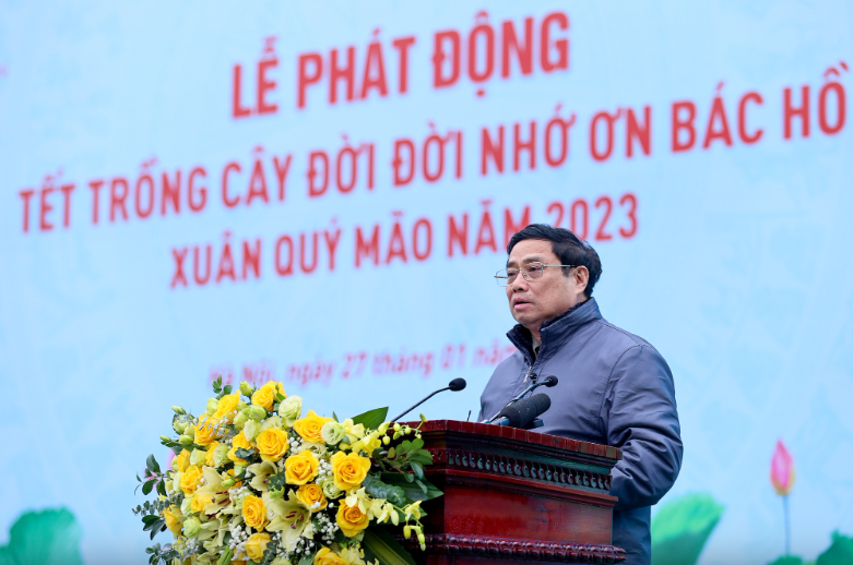 Thủ tướng tin tưởng, phong trào Tết trồng cây năm 2023 sẽ đạt được nhiều kết quả tốt đẹp, góp phần hiện thực hóa khát vọng phát triển đất nước Việt Nam hùng cường, thịnh vượng theo Nghị quyết Đại hội lần thứ XIII của Đảng và mang lại ấm no, hạnh phúc cho nhân dân, như di nguyện thiêng liêng của Bác Hồ.