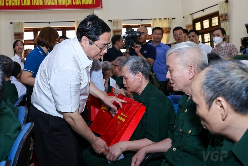| Thủ tướng Phạm Minh Chính thăm, tặng quà tại Trung tâm điều dưỡng thương binh Kim Bảng, Hà Nam - Ảnh: VGP |