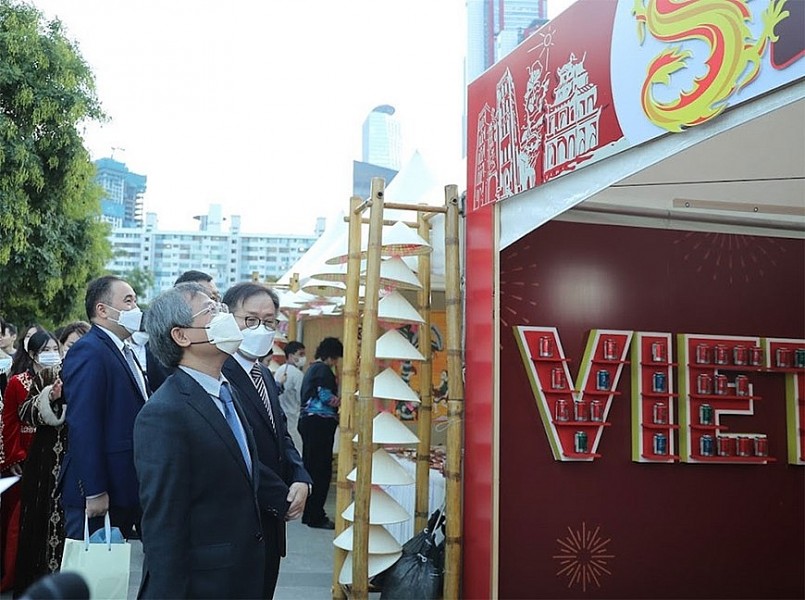 | Các đại biểu tham quan không gian trưng bày của Việt Nam tại Lễ hội |