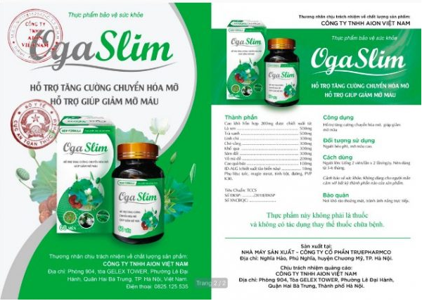 | Thực phẩm bảo vệ Ogaslim quảng cáo như thuốc, Công ty TNHH AION Việt Nam bị phạt |