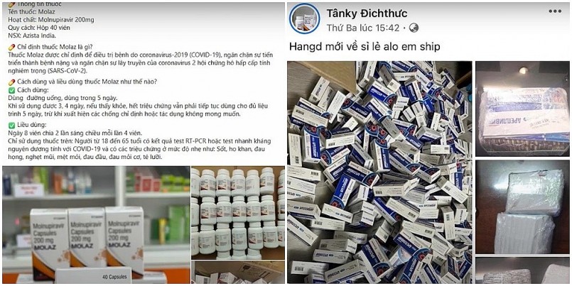 Tuy nhiên, lợi dụng tâm lý lo lắng và nhu cầu dự trữ thuốc điều trị Covid-19 cùng tình trạng thiếu hụt "túi thuốc C" (gói thuốc được cấp cho bệnh nhân Covid-19 có chứa thuốc Molnupiravir đang thử nghiệm lâm sàng), một số đối tượng trên địa bàn đã rao bán trên mạng xã hội và các nền tảng trực tuyến các loại thuốc điều trị Covid-19 có dược chất Molnupiravir.