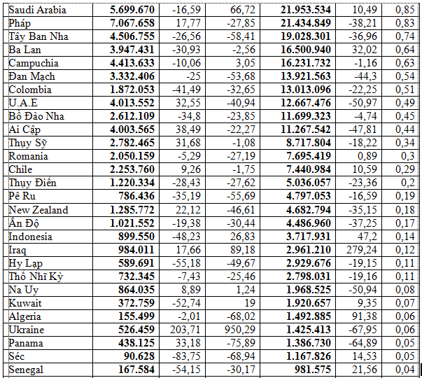 (Tính toán theo số liệu công bố ngày 15/5/2023 của TCHQ)
