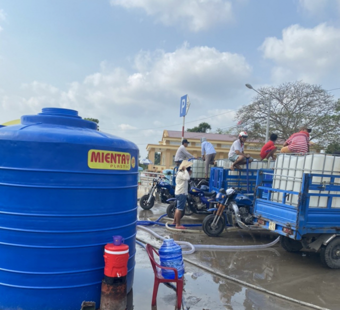 Theo ông Nguyễn Thiện Pháp, Chi cục Trưởng Chi cục Thủy lợi và Phòng chống lụt bão (Sở Nông nghiệp và Phát triển Nông thôn) tỉnh Tiền Giang, trước tình hình trên, địa phương đã triển khai nhanh phương án đầu tư gần 77 tỷ đồng chuyển trên 1,6 triệu m3 nước ngọt về cấp miễn phí cho nông dân vùng thiên tai tưới ứng cứu vườn cây. Nguồn nước ngọt được sà lan lấy từ đầu nguồn sông Tiền đem về bơm vào các điểm, ao trữ nước ngọt để nông dân dùng phương tiện đến lấy.