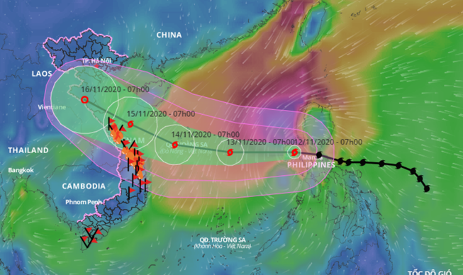 Thông tin từ Trung tâm khí tượng thủy văn Quốc gia, sáng sớm 12/11, bão Vamco đi vào Biển Đông, trở thành cơn bão số 13 trong năm nay. Đến 13h ngày 12/11, tâm bão cách quần đảo Hoàng Sa khoảng 700 km về phía đông đông nam. Vùng gần tâm bão, gió mạnh nhất vẫn ở cường độ cấp 12, giật cấp 15.