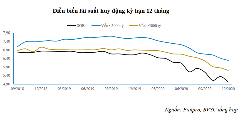 BVSC duy trì quan điểm cho rằng thanh khoản hệ thống ngân hàng trong năm 2021 sẽ khó có khả năng dư thừa hơn năm 2020. Do đó, lãi suất liên ngân hàng có thể sẽ có sự hồi phục nhưng vẫn sẽ tiếp tục duy trì ở mặt bằng thấp.