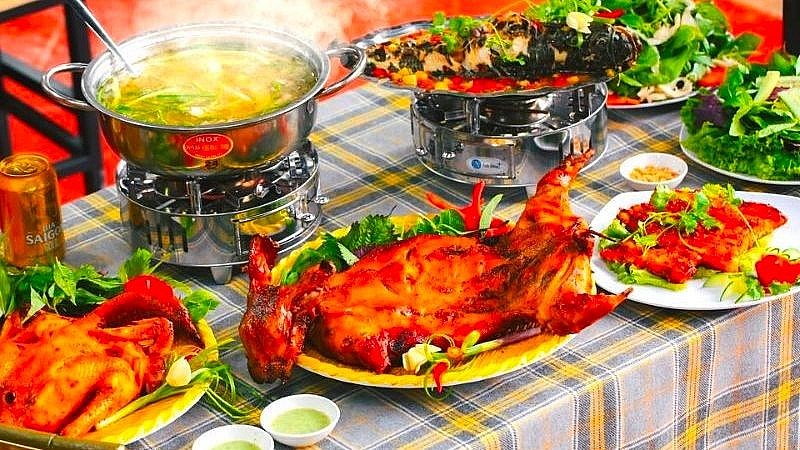 Menu: Cơm lam gà ta nướng, thỏ nướng, lẩu gà nấu rượu