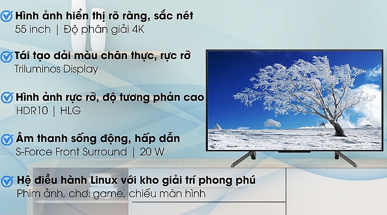Tivi xem bóng đá Sony 55 Inch 4K KD-55X7000G Ultra HD