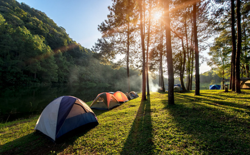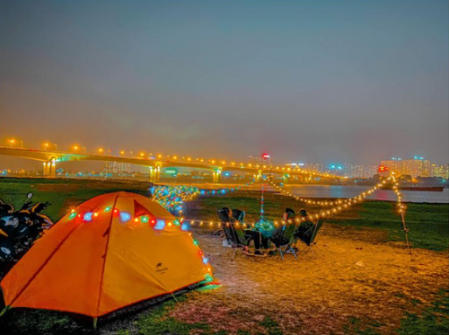 Với bờ sông rộng rãi cùng thảm cỏ xanh mướt, hãy dựng những túp lều san sát nhau để tổ chức buổi cắm trại gia đình tràn đầy niềm vui.