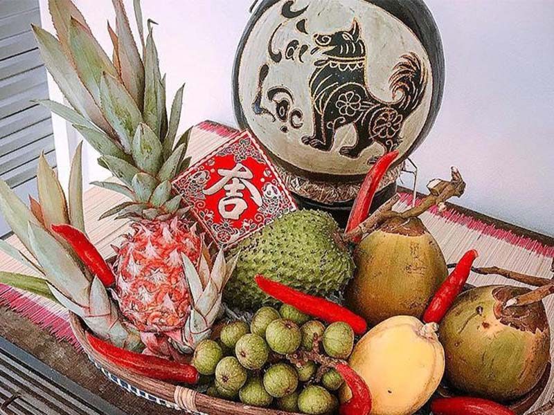 Qủa hồng, quýt: Sắc đỏ cam rực rỡ, tượng trưng cho sự may mắn và thành đạt.