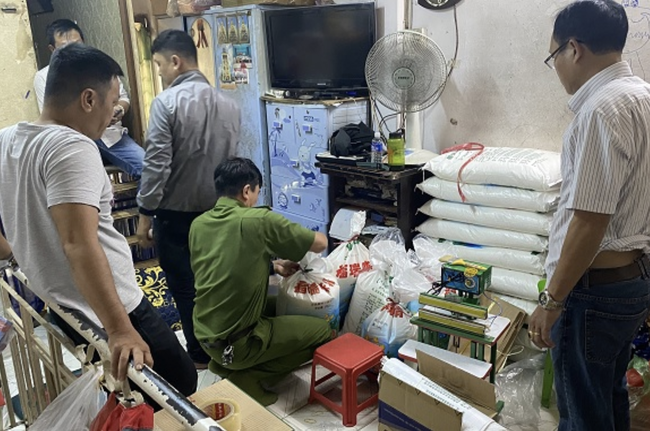 Khám xét khẩn cấp tại nơi ở của đối tượng Khâm, Tổ công tác thu giữ thêm 56 gói bột ngọt bán thành phẩm nhãn hiệu Saji loại 500g, 46 gói bột ngọt thành phẩm nhãn hiệu Saji loại 500g, 9 bao bột ngọt xá loại 25kg, 198kg bột ngọt xá, 1.300 vỏ bao bì nhãn hiệu Ajinomoto, Saji, 45 bao bột ngọt xá đã qua sử dụng cùng các phương tiện, dụng cụ để đóng gói bột ngọt.