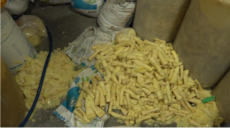 Tổ công tác sau đó đã tiến hành kiểm tra cơ sở sơ chế ngó sen và thu giữ 135kg ngó sen đã ngâm hóa chất, và 620 gam hóa chất màu trắng.