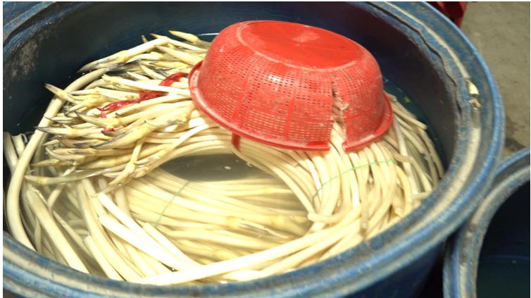 Tiến hành kiểm tra chợ đầu mối nông sản Bình Điền (quận 8, TP. HCM), lực lượng chức năng đã phát hiện, bắt quả tang 3 cơ sở đang có hành vi sử dụng hóa chất để ngâm, tẩy trắng măng, ngó sen.