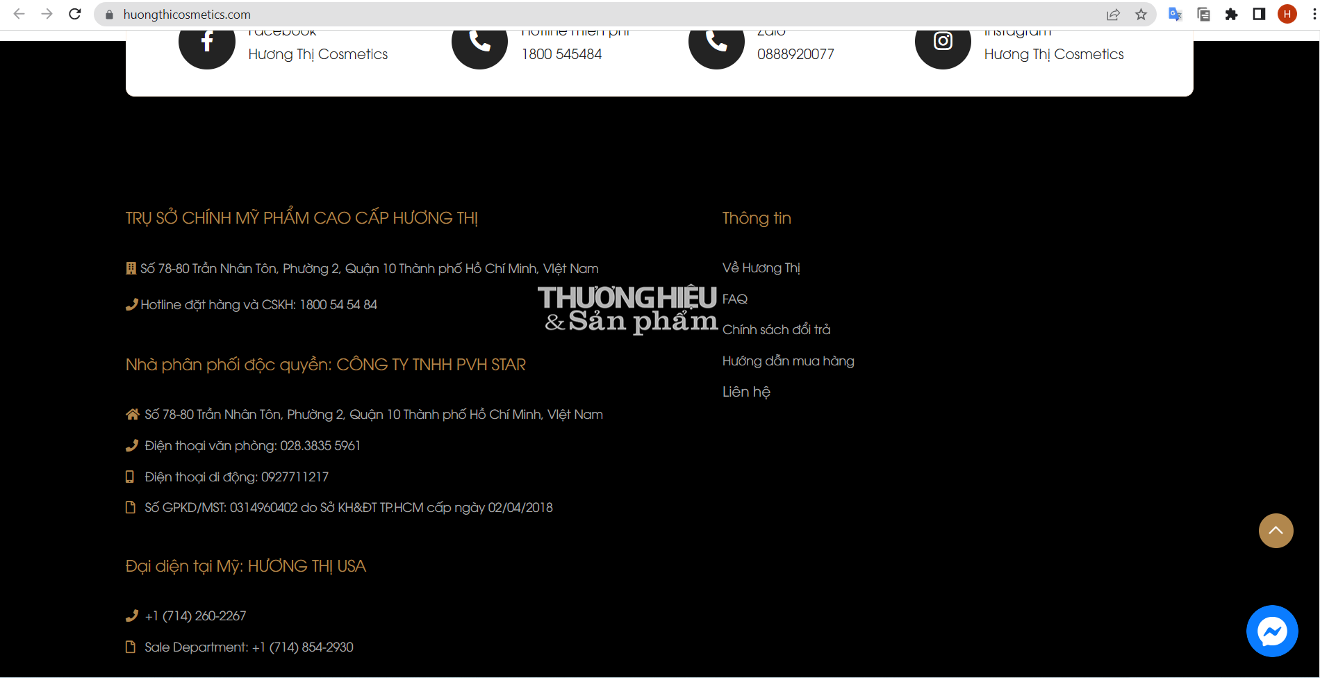 | Tại Website https://huongthicosmetics.com, Công ty TNHH PVH Star là "nhà phân phối độc quyền" của nhãn hiệu mỹ phẩm Hương Thị. |