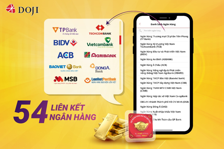 Với tính năng thanh toán đa dạng, giờ đây, khách hàng có thể lựa chọn sử dụng trên các tài khoản ngân hàng có sẵn của mình, có thể giao dịch hoàn toàn miễn phí. Khách hàng cũng có thể nhận vàng vật chất trực tiếp tại các điểm giao dịch của DOJI tại Hà Nội, TP HCM, Hải Phòng, Quảng Ninh, Đà Nẵng, Cần Thơ…