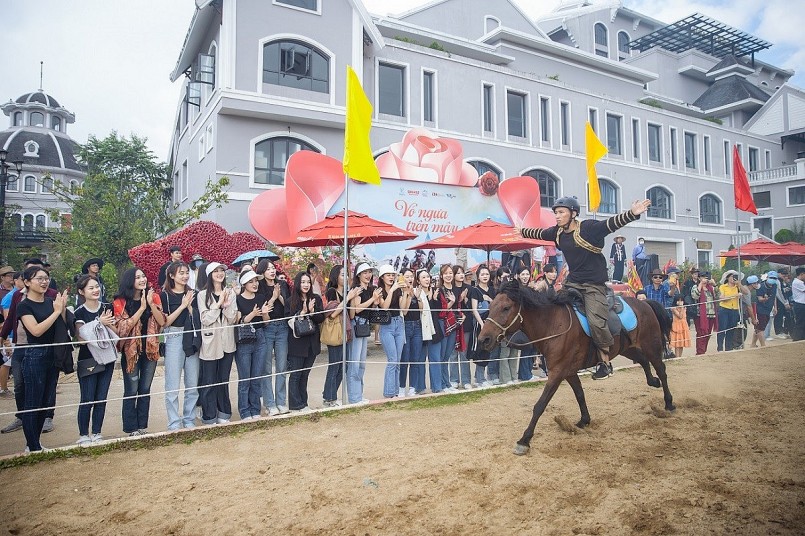 Trong những ngày đầu tiên diễn ra chương trình, con đường vòng quanh thung lũng vườn hồng luôn kín du khách. Ai nấy đều hào hứng chọn cho mình vị trí đẹp để đón xem chương trình và cổ vũ cho những nài ngựa.