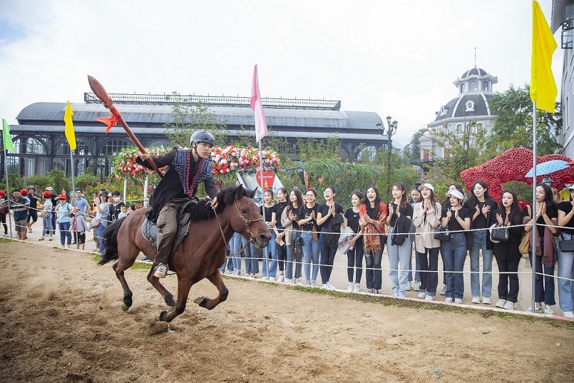 Chương trình thao diễn “Hào khí Tây Bắc” được khu du lịch Sun World Fansipan Legend tổ chức từ ngày 21/7 đến hết 29/7, là một trong những sự kiện hấp dẫn thuộc khuôn khổ Lễ hội hoa hồng 2023. Hàng ngày vào 2 khung giờ 8-11h sáng và 14-16h chiều tại Thung lũng hoa hồng lớn nhất Việt Nam, thuộc nhà ga đi cáp treo Fansipan, du khách sẽ có cơ hội đón xem những màn trình diễn vô cùng kịch tính, mãn nhãn của 30 “kỵ sĩ” và “kỵ mã” vùng cao.