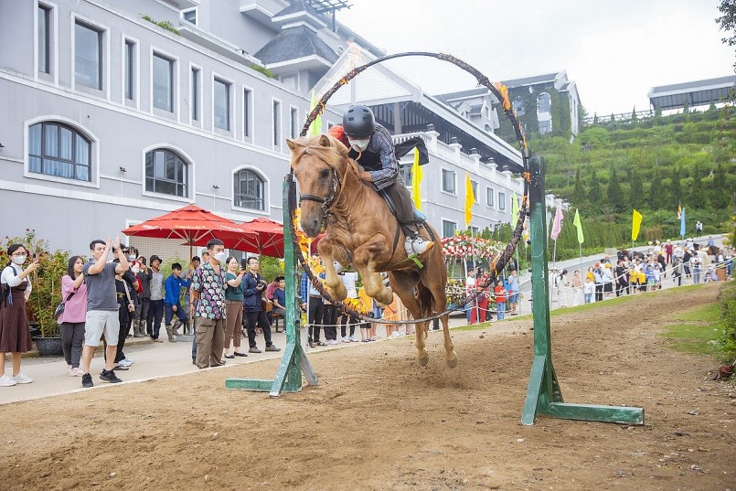 Trình diễn phi ngựa vượt chướng ngại vật, xuyên vòng lửa ở Fansipan