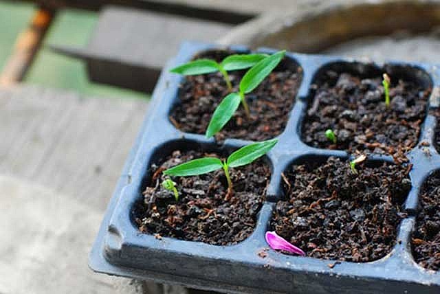 Bạn không nên gieo hạt giống ngay vào trong chậu khi mới trồng mà nên gieo vào trong các khay chuyên dụng dùng cho việc gieo cấy. Điều này sẽ giúp bạn có thể kiểm soát tốt hơn quá trình hạt nảy mầm và sinh trưởng thành cây non. Sau khi gieo vào trong khay, bạn hãy đặt khay tại những nơi ấm áp và có ánh sáng chiếu đến. Nếu điều kiện thuận lợi, chỉ sau 1-2 tuần là hạt sẽ nảy mầm và hình thành cây non. Khi cây ớt non bắt đầu cao khoảng vài cm là đã có thể mang đi trồng trong chậu được rồi.