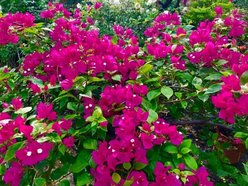 Hoa giấy là loại hoa rực rỡ được nhiều người yêu thích. Hoa kết thành từng chùm khá rực rỡ, giúp không gian sống thêm sinh động.