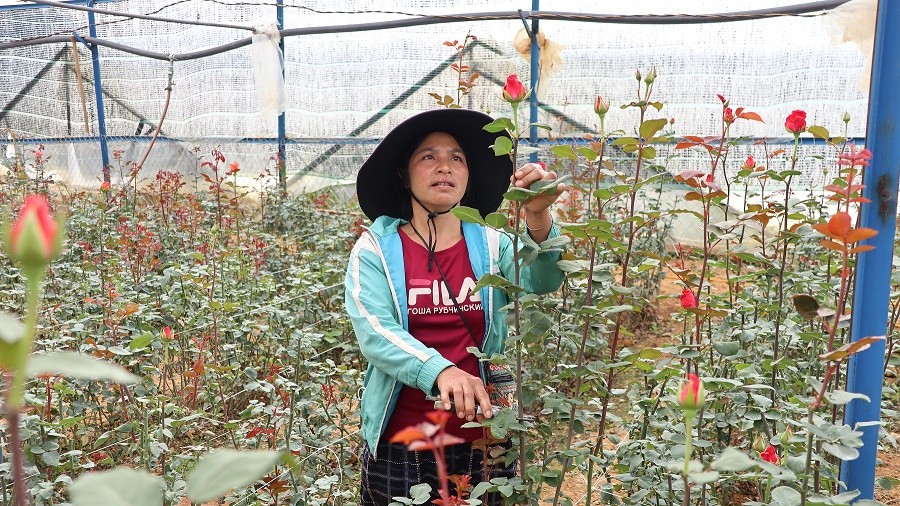 | Nghề trồng hoa hồng đã giúp nhiều hộ dân ở Lạc Dương thoát nghèo. |