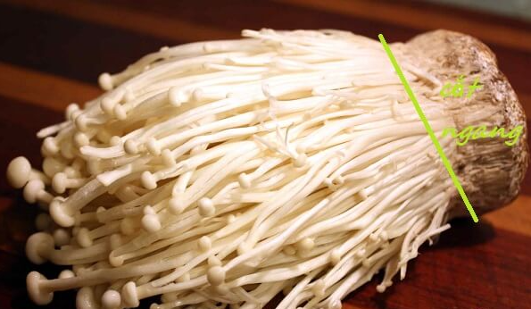 Bước 3: Bạn dùng dao cắt riêng phần thân và rễ của khóm nấm kim chi. Phần thân dùng để chế biến như bình thường, phần rễ giữ lại để trồng nấm.