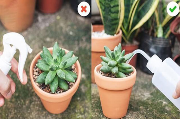 Nên sử dụng các loại bình tưới nước có chế độ vòi tưới hoặc sử dụng vòi dài chuyên dụng dành cho sen đá, xương rồng.