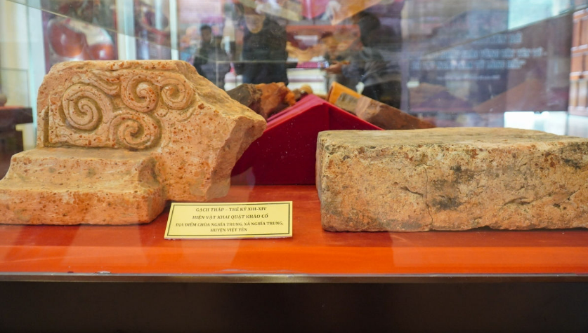 Tại đây, gần 400 hiện vật và 60 hình ảnh liên quan đến các dấu tích chùa, tháp từ thời Lý-Trần (thế kỷ XIII-XIV) và thời Lê-Nguyễn (thế kỷ XVII-XIX) trên địa bàn 5 huyện Yên Dũng, Lục Nam, Lục Ngạn, Việt Yên, Yên Thế được trưng bày theo các nhóm hiện vật là vật liệu xây dựng-trang trí kiến trúc, là đồ dùng, vật dụng bằng chất liệu sành, gốm, sứ...