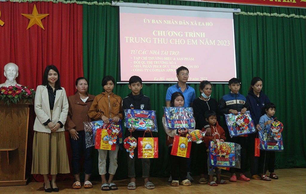 Chương trình "Tết Trung thu cho em năm 2023" được đồng hành của Công ty Cổ phần APOLLO OIL; Nhà Phân phối Đức Thắng Buôn Hồ. Các phần quà gồm: Cặp da, bánh trung thu và lồng đèn.