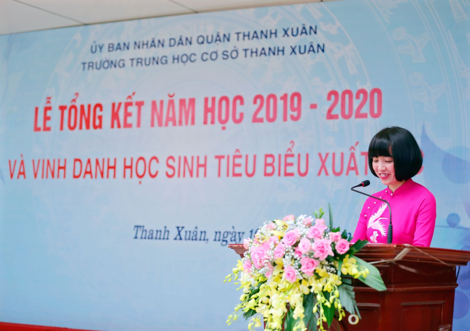 Ngày 10/7/2020, trường THCS Thanh Xuân đã tổ chức Lễ Tổng kết năm học 2019 - 2020 và vinh danh học sinh tiêu biểu xuất sắc. Tham dự buổi lễ có sự góp mặt của các đồng chí lãnh đạo Bộ giáo dục & Đào tạo; Lãnh đạo Quận ủy, UBND quận Thanh Xuân; Lãnh đạo Phòng GD&ĐT quận Thanh Xuân; lãnh đạo phường Thanh Xuân Trung; đại diện Công an phường Thanh Xuân Trung; Uỷ viên Ban ĐD CMHS nhà trường; Ban đạo diện CMHS các lớp; các bậc phụ huynh có con đạt thành tích xuất sắc, tiêu biểu trong năm học 2019 – 2020 và các em học sinh trong nhà truờng.