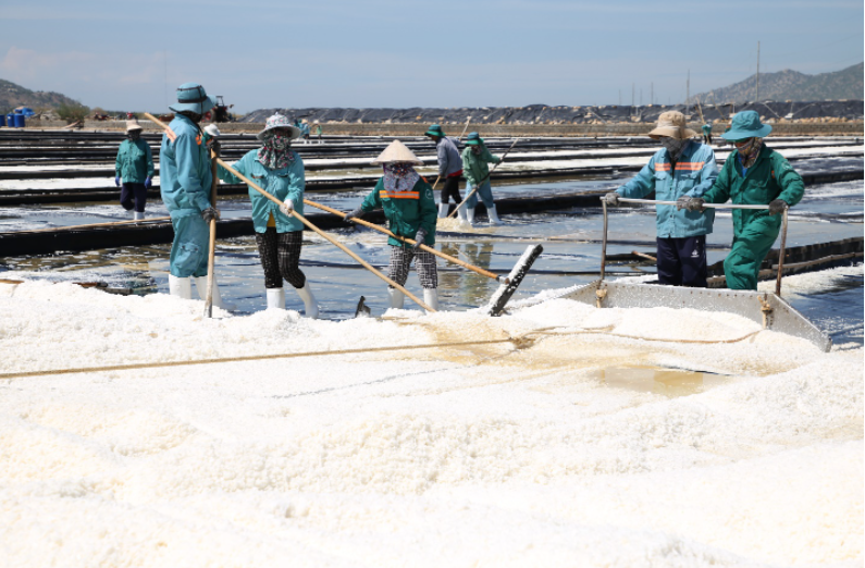 | Cánh đồng muối Quán Thẻ sử dụng hơn 900 công nhân là lao động trên chính địa phương |