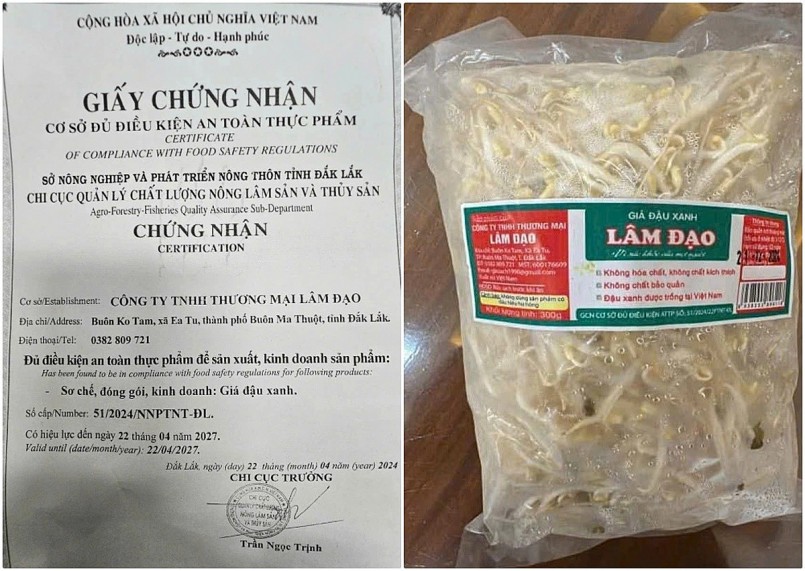 Trong đó, có một cơ sở sản xuất giá đỗ ngâm hoạt chất trên có tên Lâm Đạo khai nhận đã ký hợp đồng cung cấp giá đỗ cho chuỗi Bách Hoá Xanh với số lượng từ 350 – 400 kg/ngày. Trên bao bì sản phẩm, các cơ sở còn dán nhãn "không hóa chất", "vì sức khỏe mọi người".