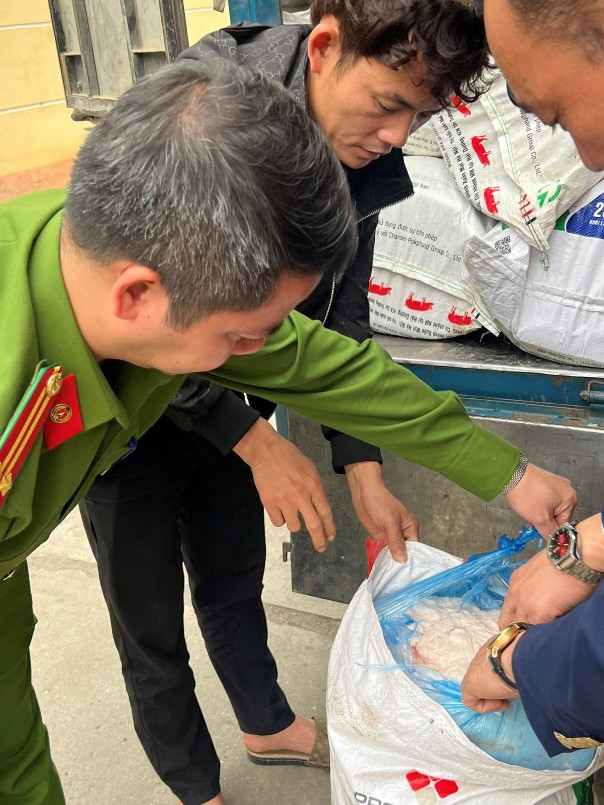 Đội Quản lý thị trường (QLTT) số 2 tỉnh Tuyên Quang phát hiện xe tải vận chuyển 31 bao tải dứa chứa tổng số 1,4 tấn mỡ lợn đông lạnh không rõ nguồn gốc.