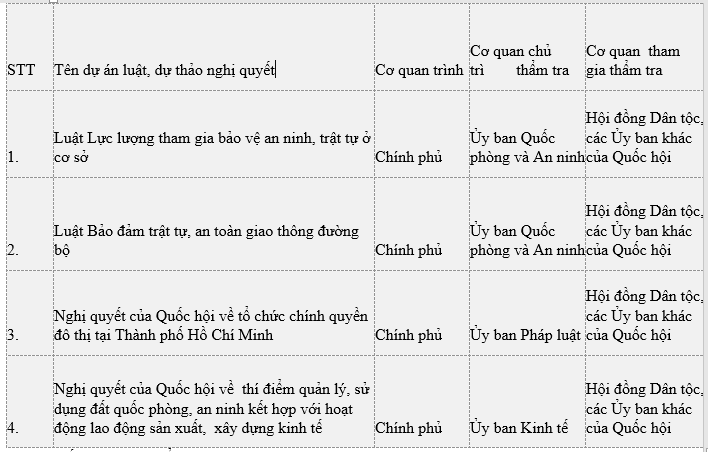Uỷ ban Thường vụ Quốc hội nhất trí thông qua việc phân công cơ quan trình, cơ quan thẩm tra, cơ quan tham gia thẩm tra các dự án luật, dự thảo nghị quyết được bổ sung vào Chương trình xây dựng luật, pháp lệnh năm 2020 tại kỳ họp thứ 10 như: